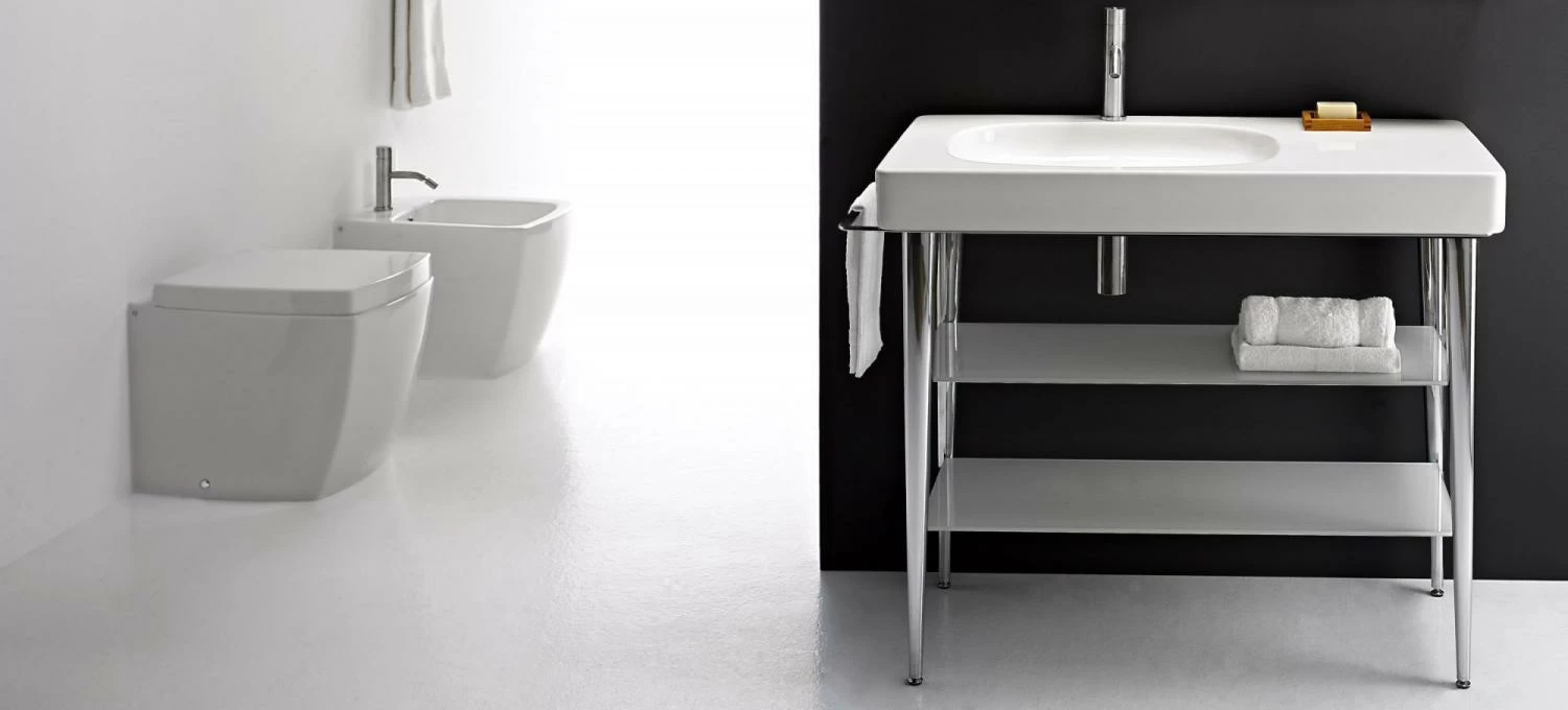 Коллекция FUSION включает модели с различными характеристиками: от числа ножек до наличия стеклянных полок. Они могут иметь встроенные полотенцедержатели и быть укомплектованы столешницами для хранения мыла и косметики. Доступны как модели с отверстиями для смесителя, так и без них.