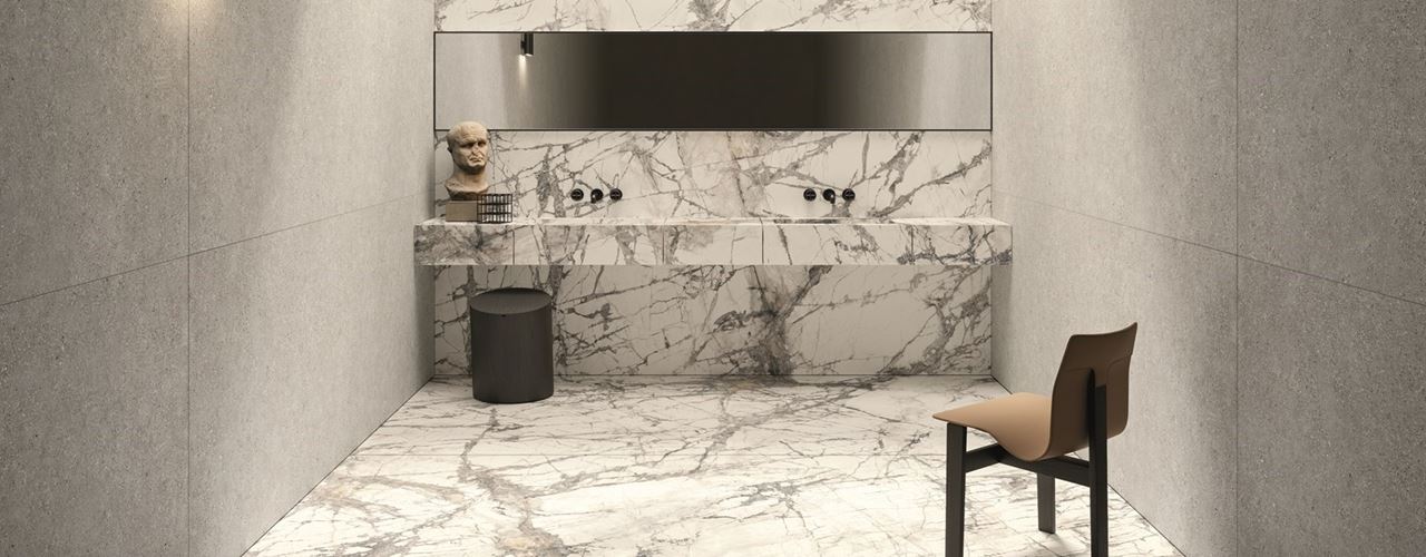 Мраморные поверхности от Ariostea отличаются высокой прочностью и устойчивостью к внешним воздействиям. Например, текстура Микеланджело Альтиссимо вдохновляет своими классическими линиями, а Ultra Marmi Imperial Grey привносит в интерьер изысканную элегантность.