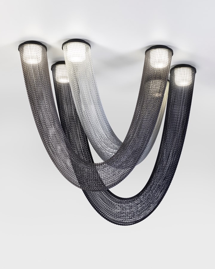 Коллекция Aura включает шесть моделей ламп, выполненных из цветных металлических цепей и стеклянных диффузоров. Эти лампы подходят для создания уникального освещения в жилых и коммерческих интерьерах.