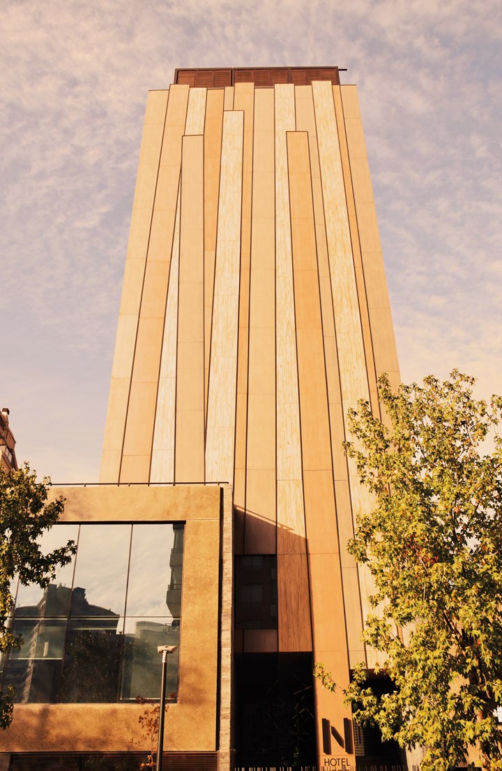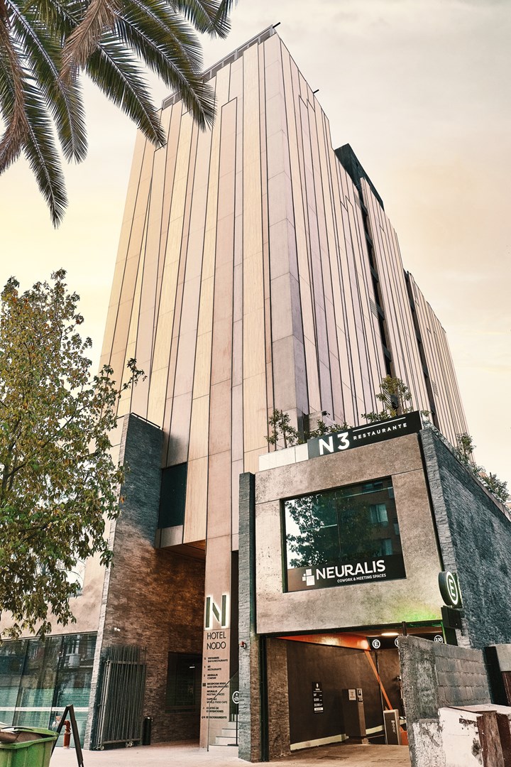 Проект Hotel Nodo в Южной Америке, созданный Риккардо Штайном, использует биоактивные поверхности Laminam для борьбы с загрязнением воздуха. Эти поверхности очищают воздух, создавая эффект живого организма.