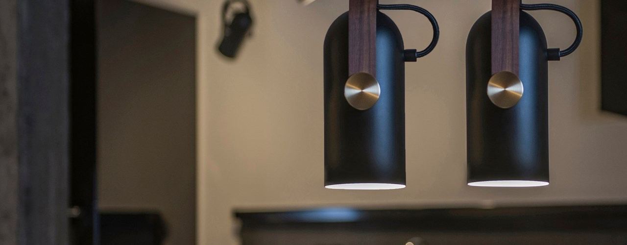 Светильники изготовлены из алюминия, ореха и латуни, что обеспечивает долговечность и стильный внешний вид.