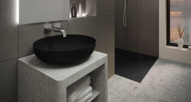Душевые поддоны Nexsys и раковины Miena — это примеры того, как черный цвет может подчеркнуть вашу индивидуальность и стиль.