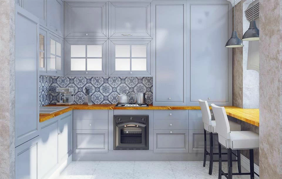 Дизайнеры предлагают использовать минималистичные решения и светлые оттенки для создания визуального расширения пространства. Угловая планировка и остров создадут комфортную рабочую зону.
