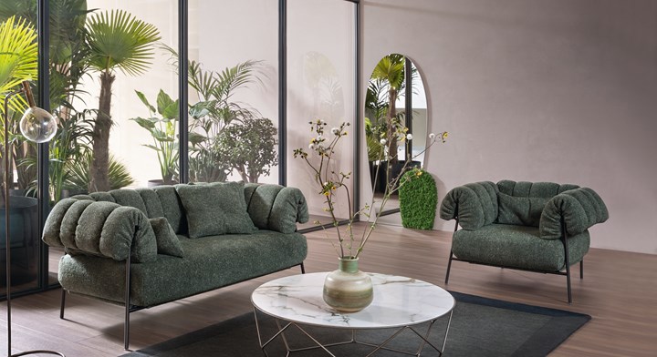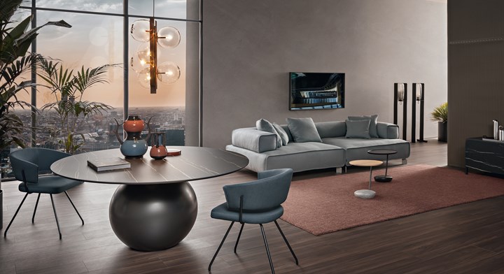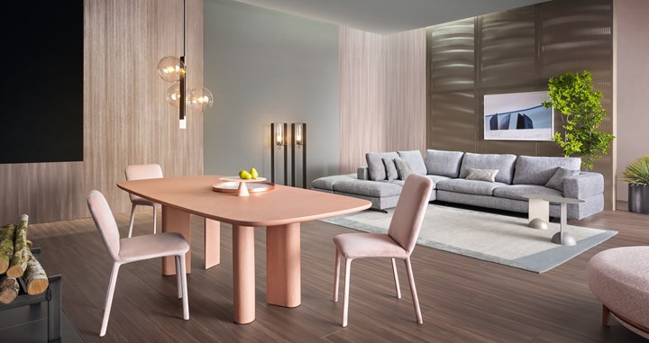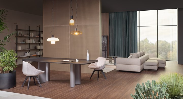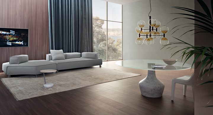 Bonaldo использует инновационные материалы, такие как шелковая отделка керамики и изысканные ткани.