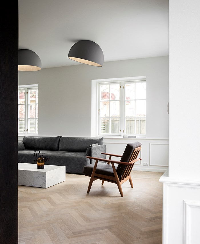 Duo сочетает в себе изогнутый ламинат дуба и металлический абажур, создавая уникальный световой эффект. Доступна в различных размерах, что позволяет адаптировать её под любой интерьер.