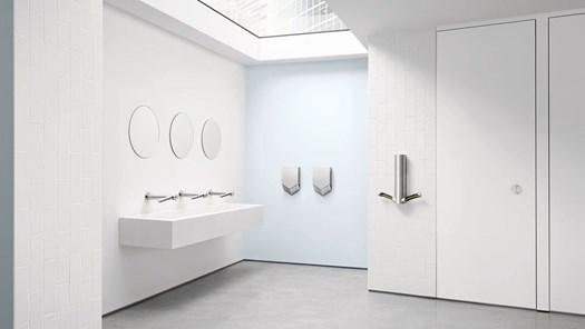 Dyson Airblade 9kJ обеспечивает быстрое и гигиеничное высушивание рук, а также отличается низким потреблением энергии.