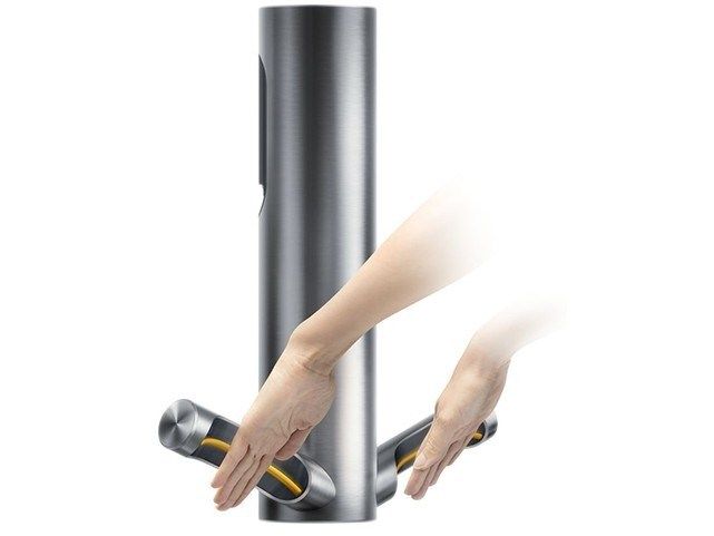Dyson Airblade 9kJ использует бесконтактную технологию активации воздушного потока и фильтр HEPA для очистки воздуха.
