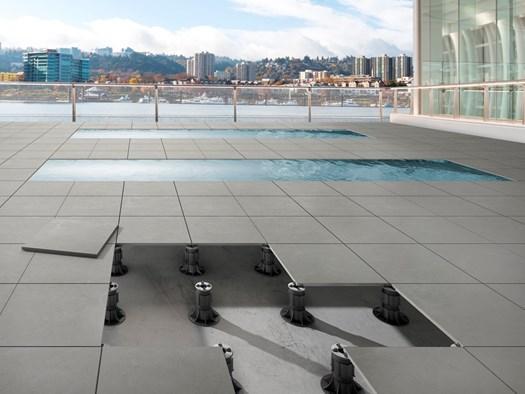 INSIDE — это стальные опоры и облицованные панели, регулируемые по высоте. Ветрозащитная система решает проблему подъема плит ветром, обеспечивая безопасность.