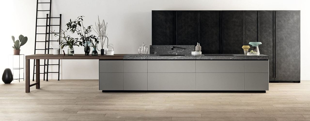 Air Logica — это эргономичная задняя панель, скрывающая кухонные аксессуары и облегчающая организацию пространства.