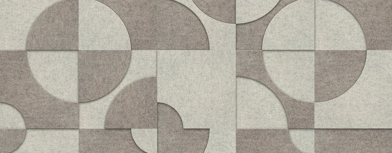 Войлочные плитки RELIEF с геометрическими мотивами можно комбинировать для создания уникальных настенных дизайнов. Перегородки WAVE идеально подходят для зонирования пространств, а мебель, такая как табурет ENNO и скамья QUADER, добавляют динамику и стиль.