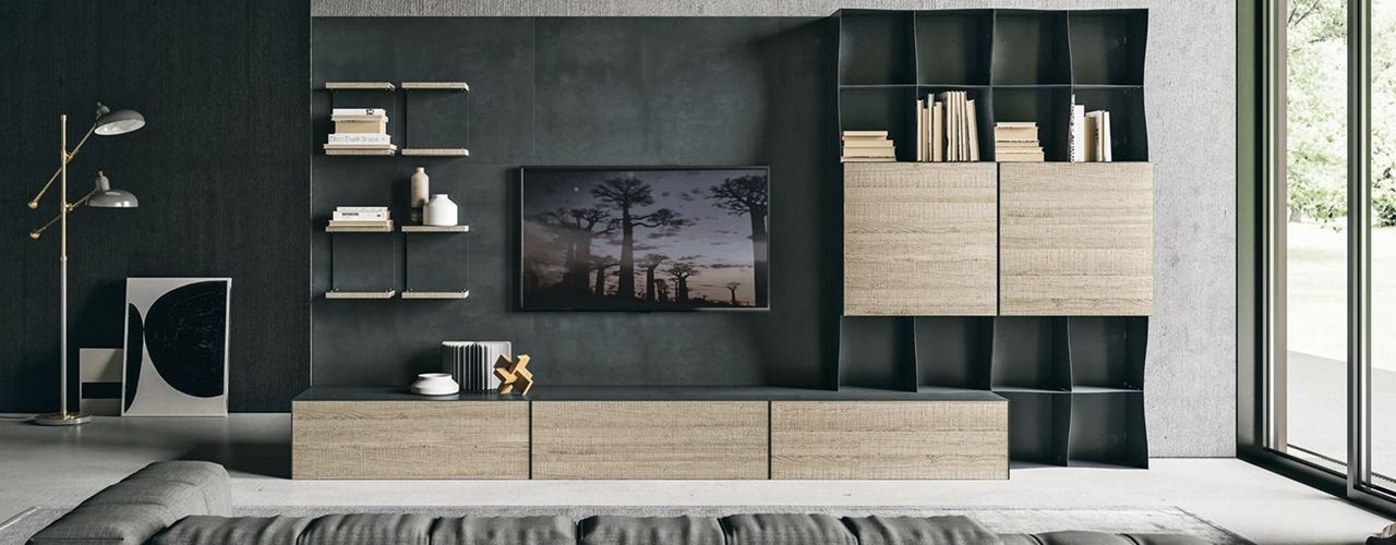 Шкаф доступен в различных отделках и материалах, таких как бетон и натуральный дуб. Его модули легко комбинируются, что позволяет адаптировать их под ваши нужды.