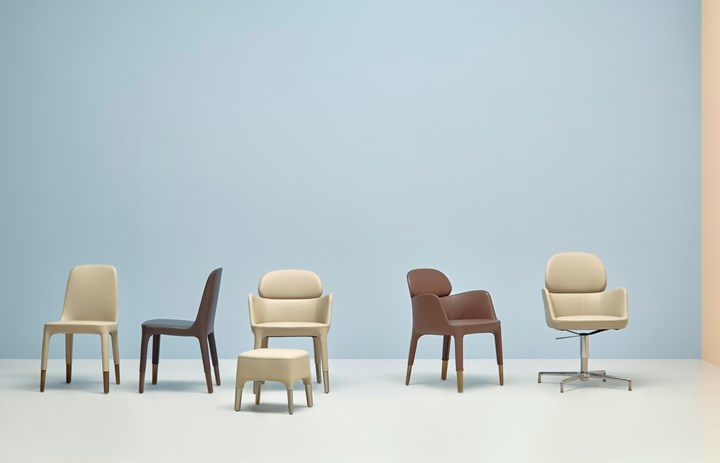Кресла Ester от Pedrali, хромированные детали и цветовые акценты создают атмосферу современного футуризма и комфорта.