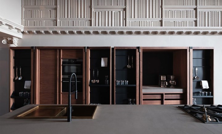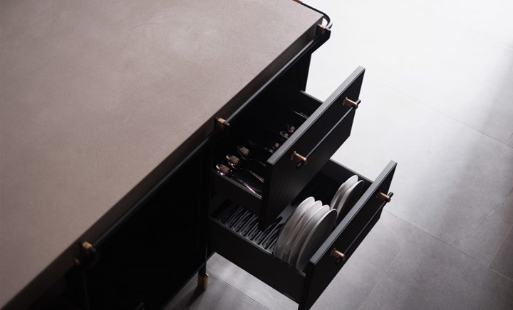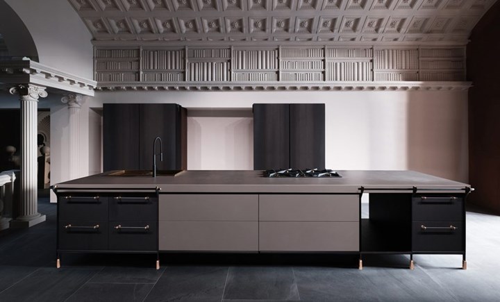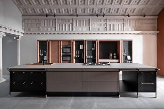 Кухня Canossa от Scic - это многослойный дизайн, в котором каждый элемент продуман до мелочей. Использование камня, дерева, латуни и черного эмалированного железа создает гармонию и элегантность.