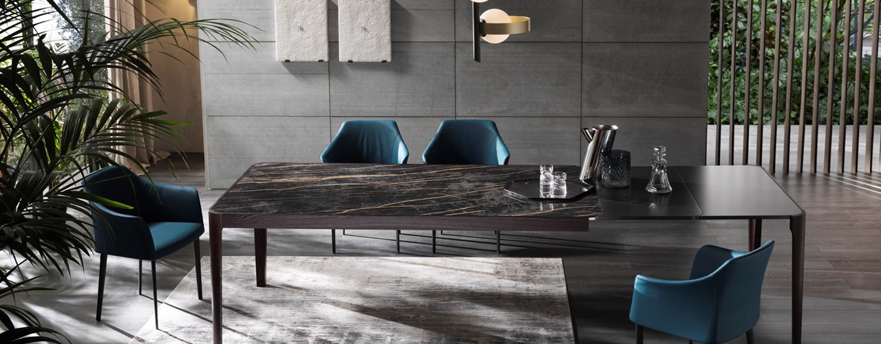 Коллекция включает в себя фиксированные и раздвижные версии столов. Например, стол Cross может быть увеличен до 2,8 метра, что делает его идеальным для больших помещений.