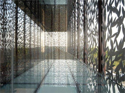 Металлическая конструкция не только придает зданию уникальный внешний вид, но и улучшает его функциональные характеристики. Панели из нержавеющей стали, обработанные лазером, создают впечатление кружева и позволяют контролировать освещение внутри здания.