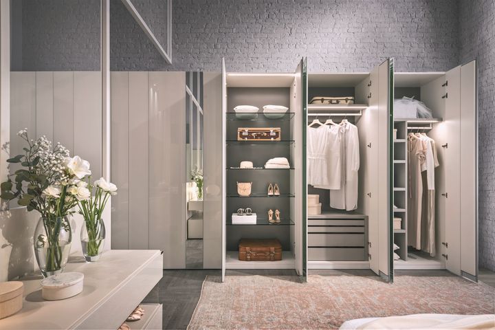 Модели СЕЙЧАС варьируются от 47 см до более 13 метров в длину, что делает их подходящими как для небольших квартир, так и для просторных домов. Благодаря запатентованной системе открывания двери шкаф может служить как перегородка в открытых пространствах.