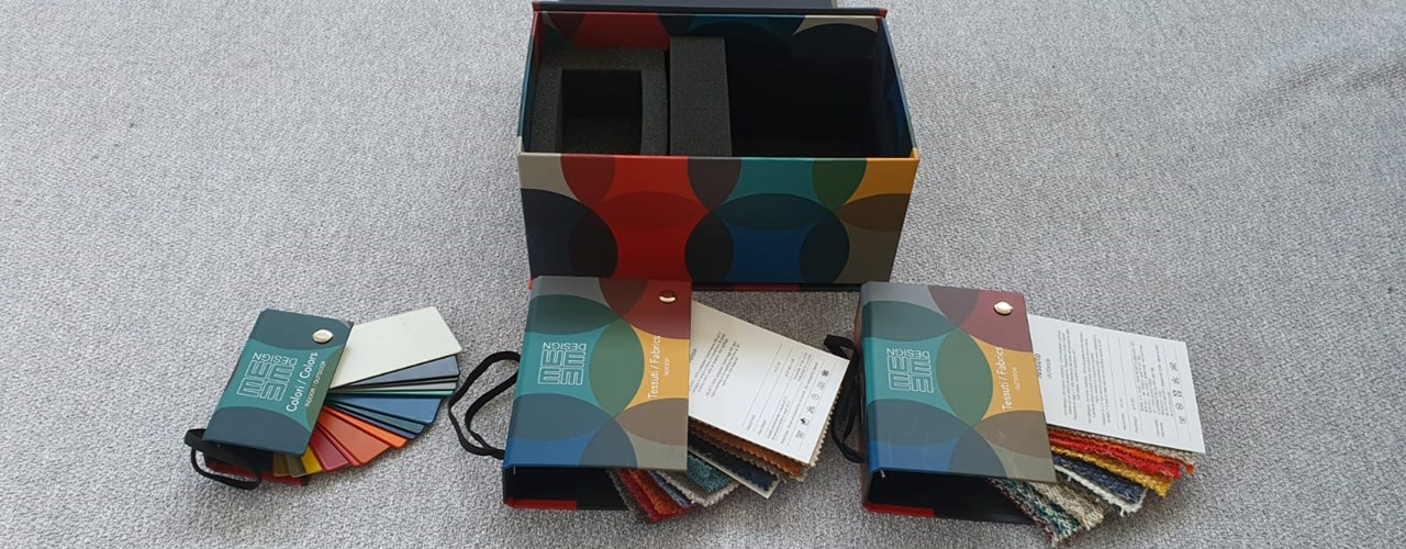Коробка Memedesign идеально подходит для дизайнеров и магазинов, предоставляя возможность быстро оценить материалы и цвета, необходимые для проекта.