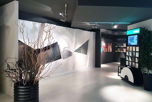 Новое пространство Oikos предлагает широкий спектр решений из хромоматериалов, служа местом встречи компании и клиентов.