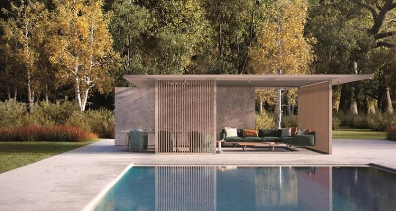 Pavilion H от Kettal Studio предлагает инновационный подход к дизайну беседок. Его минималистичная алюминиевая структура позволяет использовать различные покрытия и боковые панели, которые можно настроить под конкретные нужды.