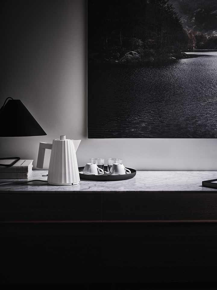 Чайник Plissé, разработанный Микеле Де Лукки, представляет собой сочетание архитектурных элементов и модных форм. Его складчатый дизайн вдохновлен искусством создания одежды и архитектуры, что делает его уникальным предметом на вашей кухне.