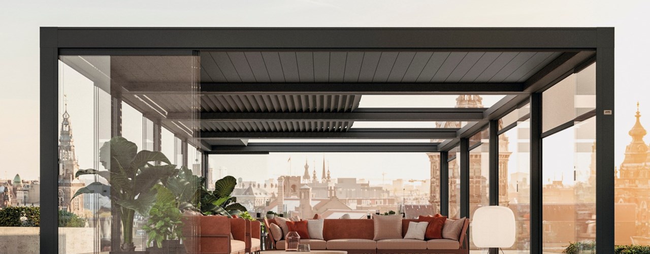 Серия Brera – это пример пергол, которые можно использовать в разных условиях. Их выдвижные алюминиевые лопасти легко регулируются для создания оптимального комфорта.