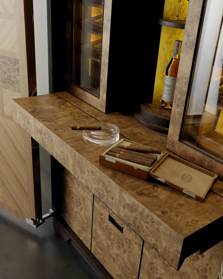 Винная колонна оснащена продуманной системой хранения и демонстрирует утонченный дизайн. Коктейльная колонна предлагает все необходимое для приготовления напитков, а сигарная колонна обеспечивает идеальные условия для хранения и наслаждения сигарами.