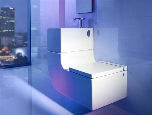 Раковина W + W объединяет функции умывальника и туалета, экономя пространство и ресурсы. Ванна In-Flow обеспечивает комфорт с минимальным расходом воды.