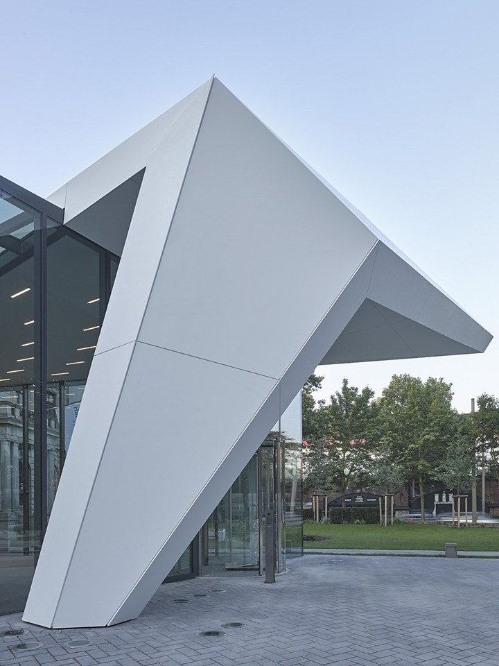 Архитекторы создали 'летающую крышу', которая визуально расширяет пространство и придает зданию уникальную динамику.