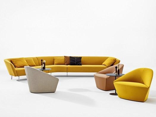 Модульная система Zinta позволяет создавать уникальные композиции, а кресла Colina отличаются элегантным профилем, идеально дополняющим диваны Loop.