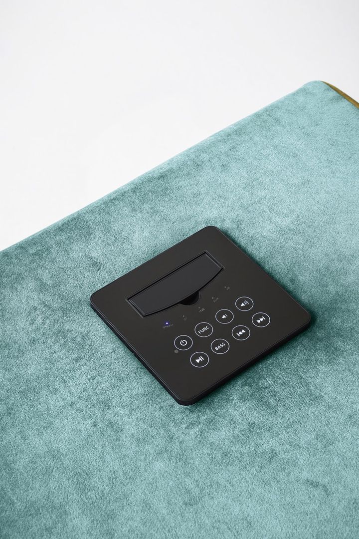 Zeppelin оснащен стереосистемой с двумя динамиками и сабвуфером, что обеспечивает высококачественное звучание. Обивка из вельвета и возможность персонализации делают его стильным дополнением интерьера.