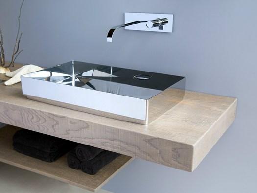 Коллекция включает столешницы из дуба и нержавеющей стали, которые можно комбинировать с различными умывальниками. Это позволяет создавать индивидуальные решения для любого интерьера.