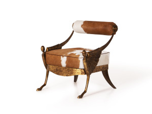 Кресло из кожи пони и гравированной латуни