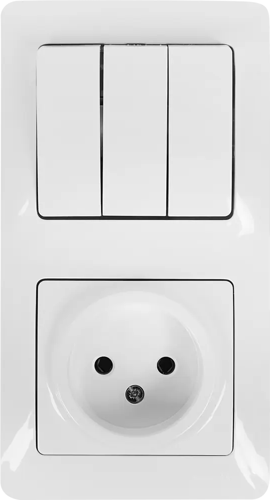 Schneider Electric Glossa — трёхклавишный выключатель с розеткой в белом глянце 82170746