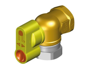 Запорный клапан с гнездом давления и предохранительной ручкой версия 90° правая с поворотной гайкой