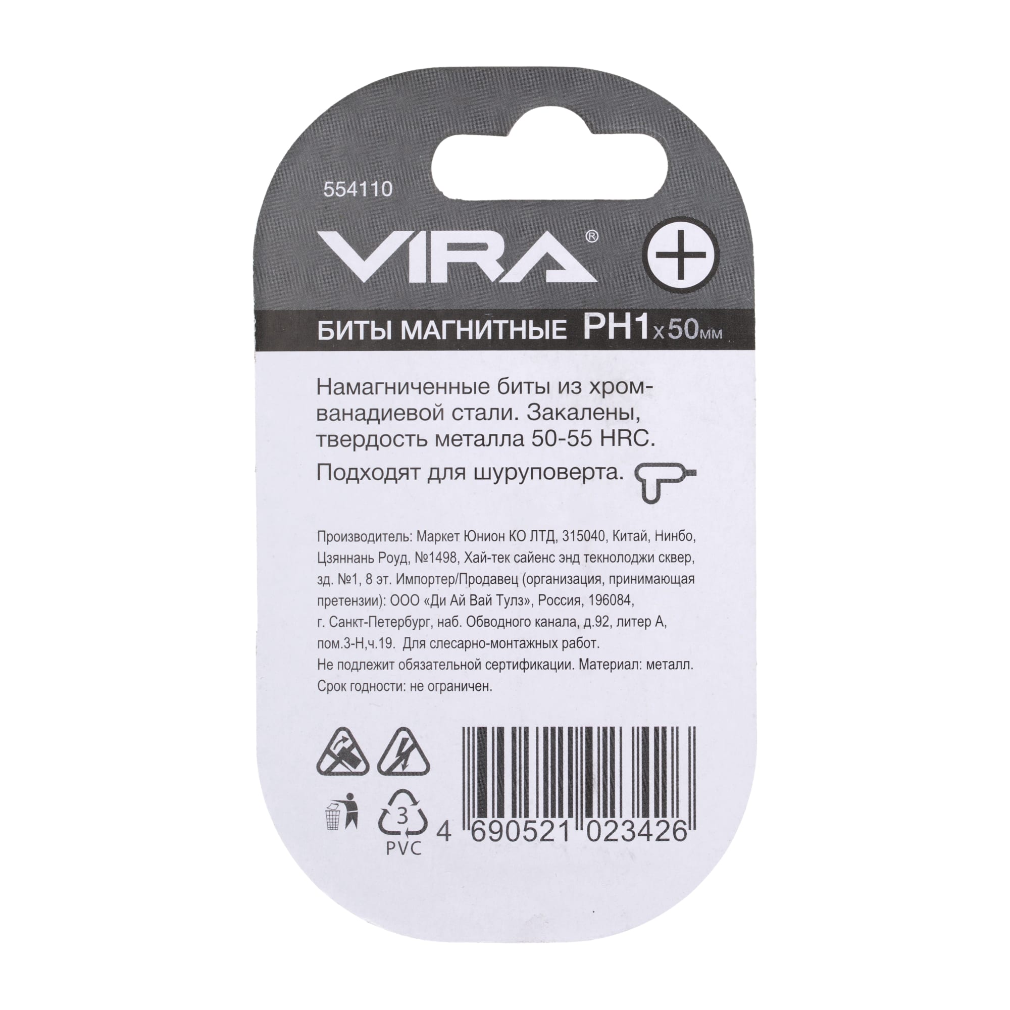 Набор магнитных бит VIRA PH1 50 мм для точного монтажа 82619647 STLM-0031907
