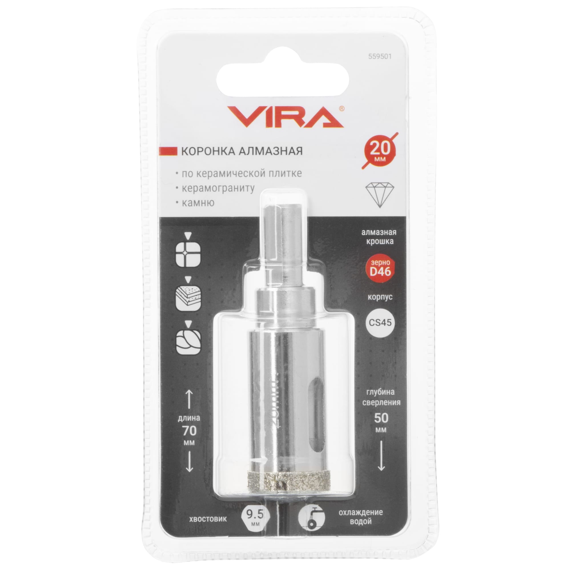 Алмазная коронка VIRA 20 мм для керамогранита и плитки 84721419 STLM-0054019