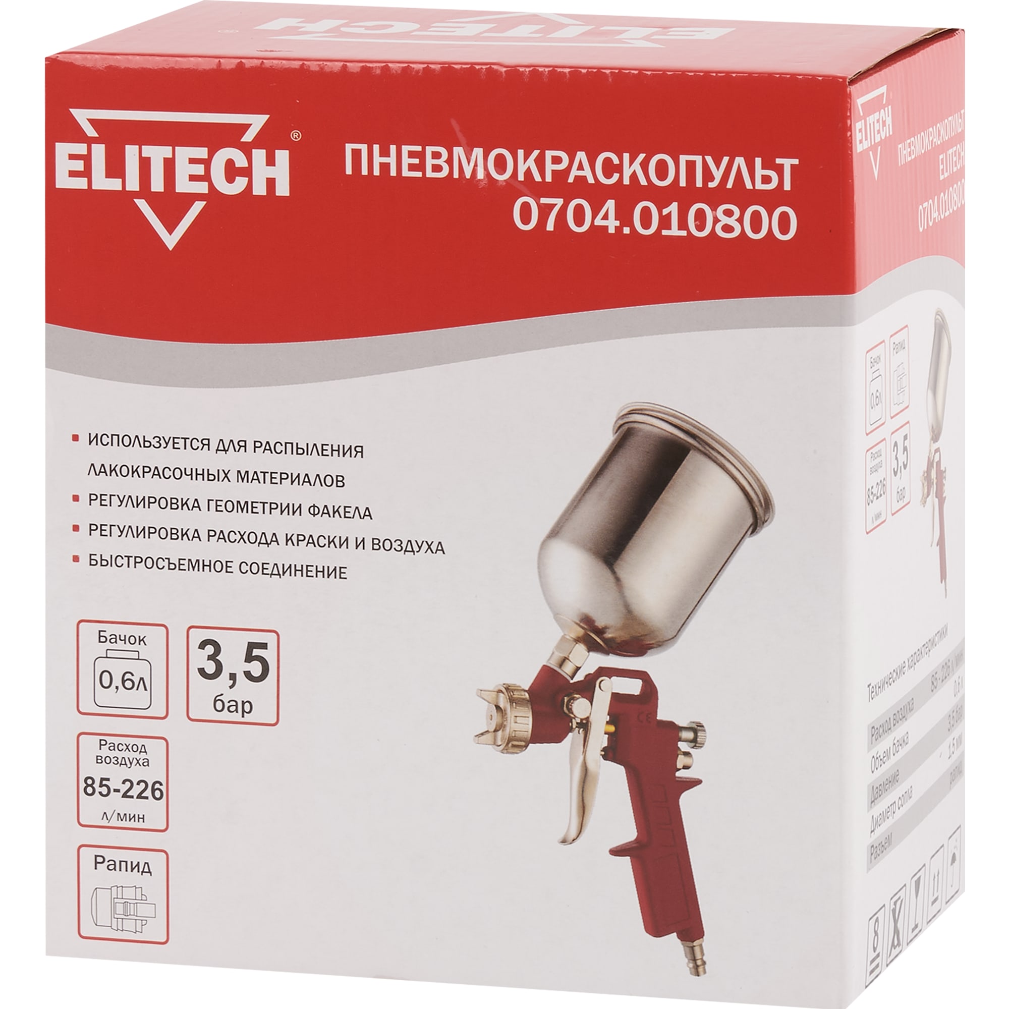 Пневматический краскораспылитель Elitech с металлическим бачком 84552392 STLM-0051859