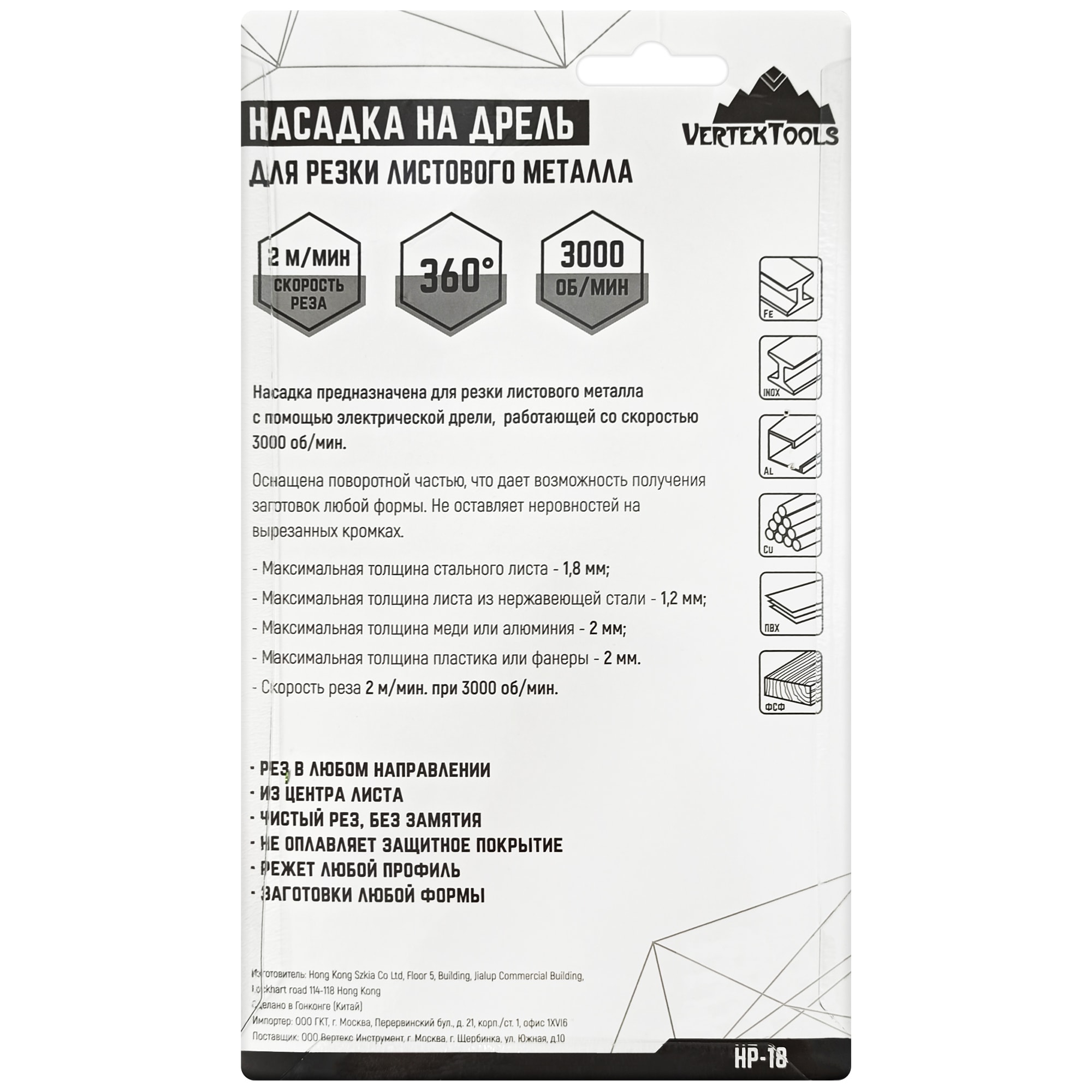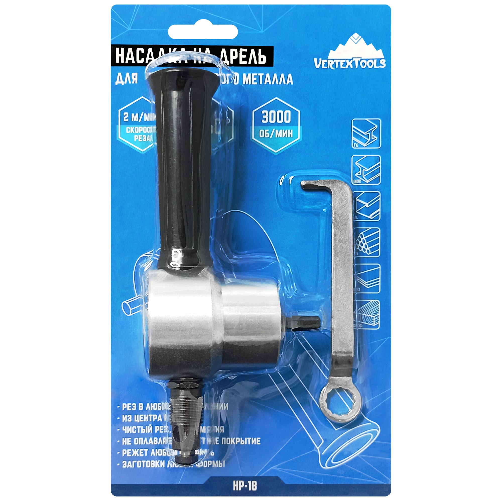 Насадка Vertextools превращает вашу дрель в мощный инструмент для обработки листового металла, обеспечивая чистый и точный рез без деформации материала.