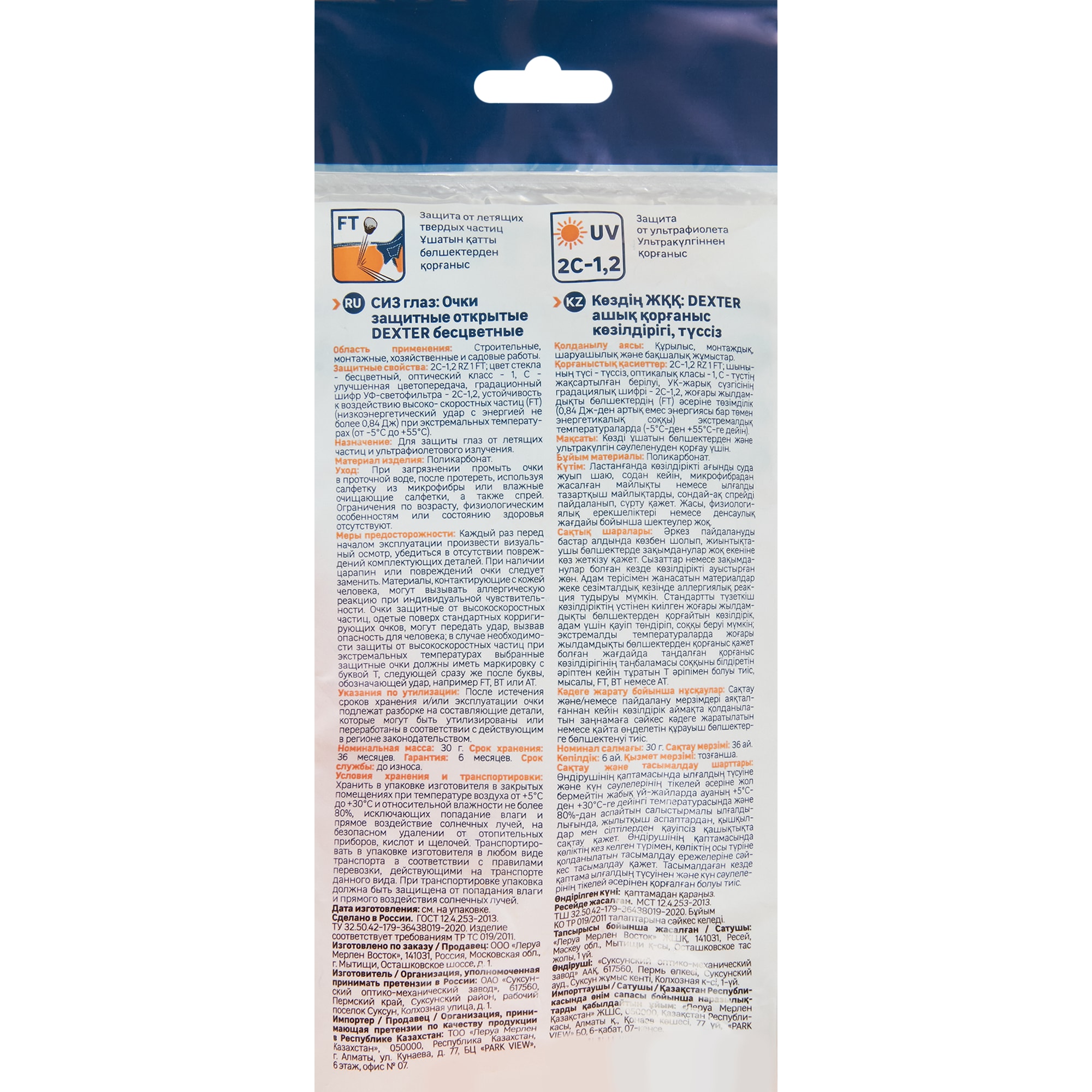Защитные очки открытого типа DEXTER для строительных работ 89176949 STLM-0079523 предоставляется с гарантией 12 месяцев с момента покупки.