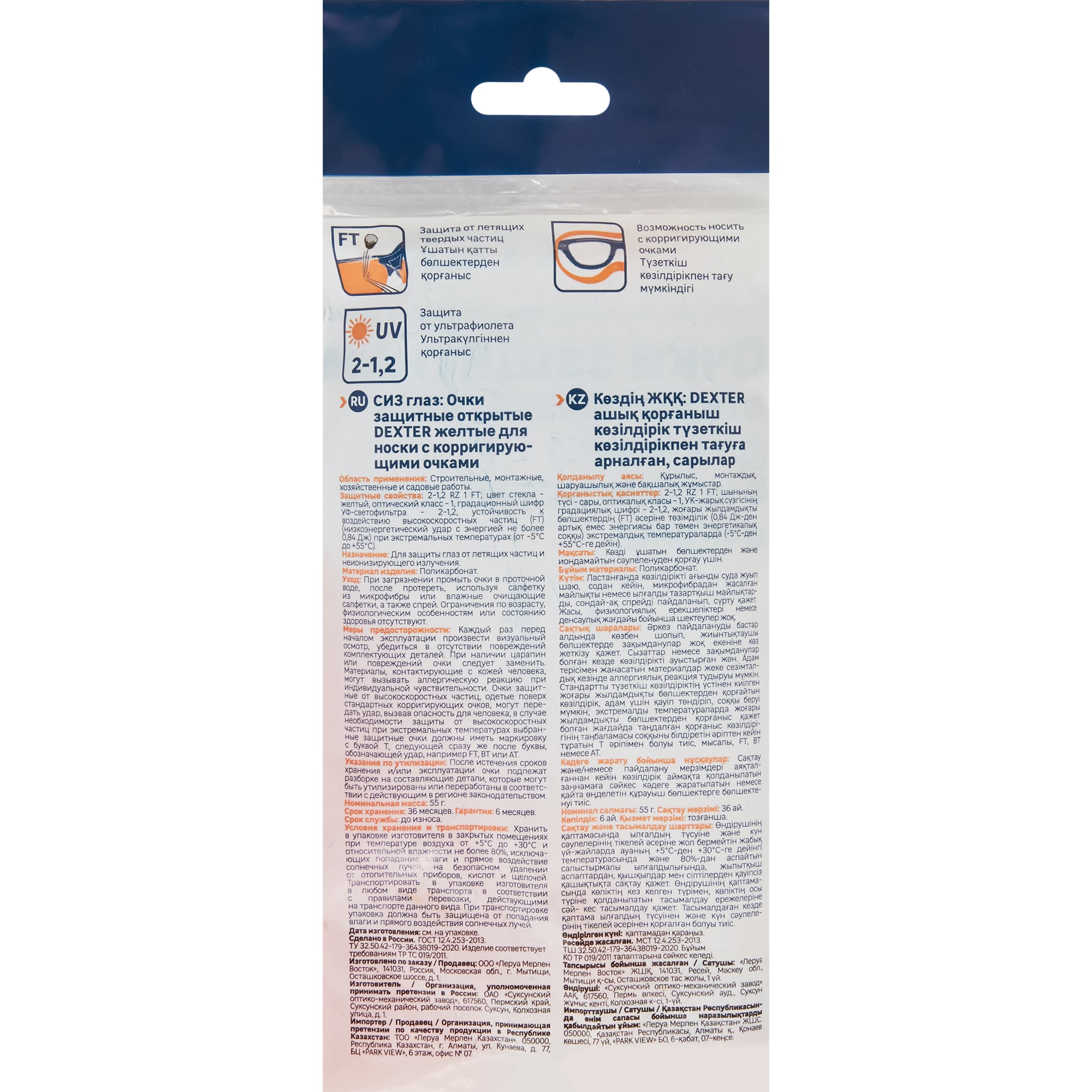 Защитные очки Dexter желтые с регулируемой посадкой 89176951 STLM-0079525 предоставляется с гарантией 12 месяцев с момента покупки.