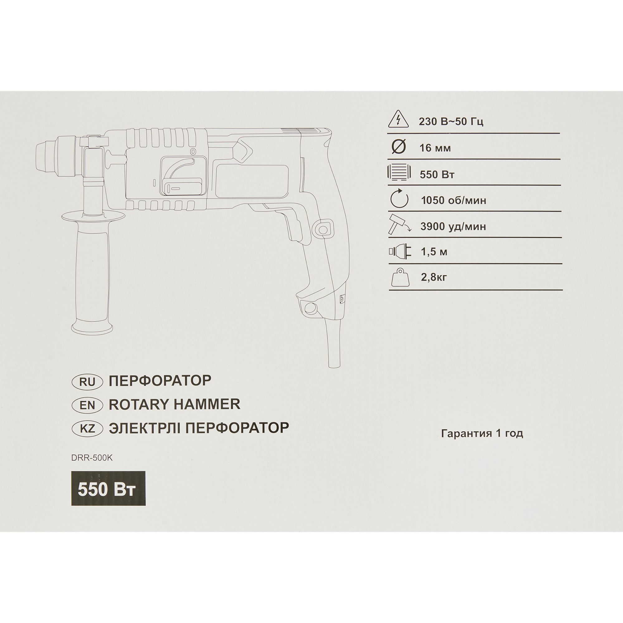 Сетевой перфоратор Santreyd DRR-500K с SDS-plus для бетона и стали 84276178 STLM-0047980 предоставляется с гарантией 12 месяцев с момента покупки.