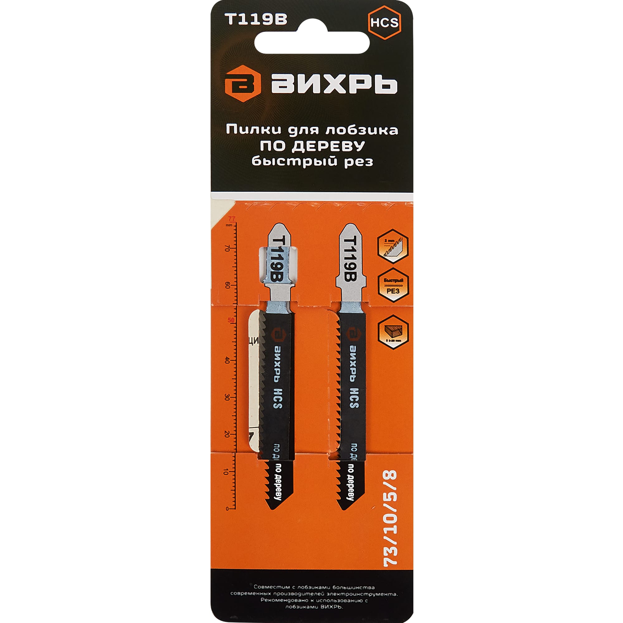 Пилки для электролобзика Вихрь Т119В - быстрый рез по дереву, 2 шт 85121108 STLM-0059072