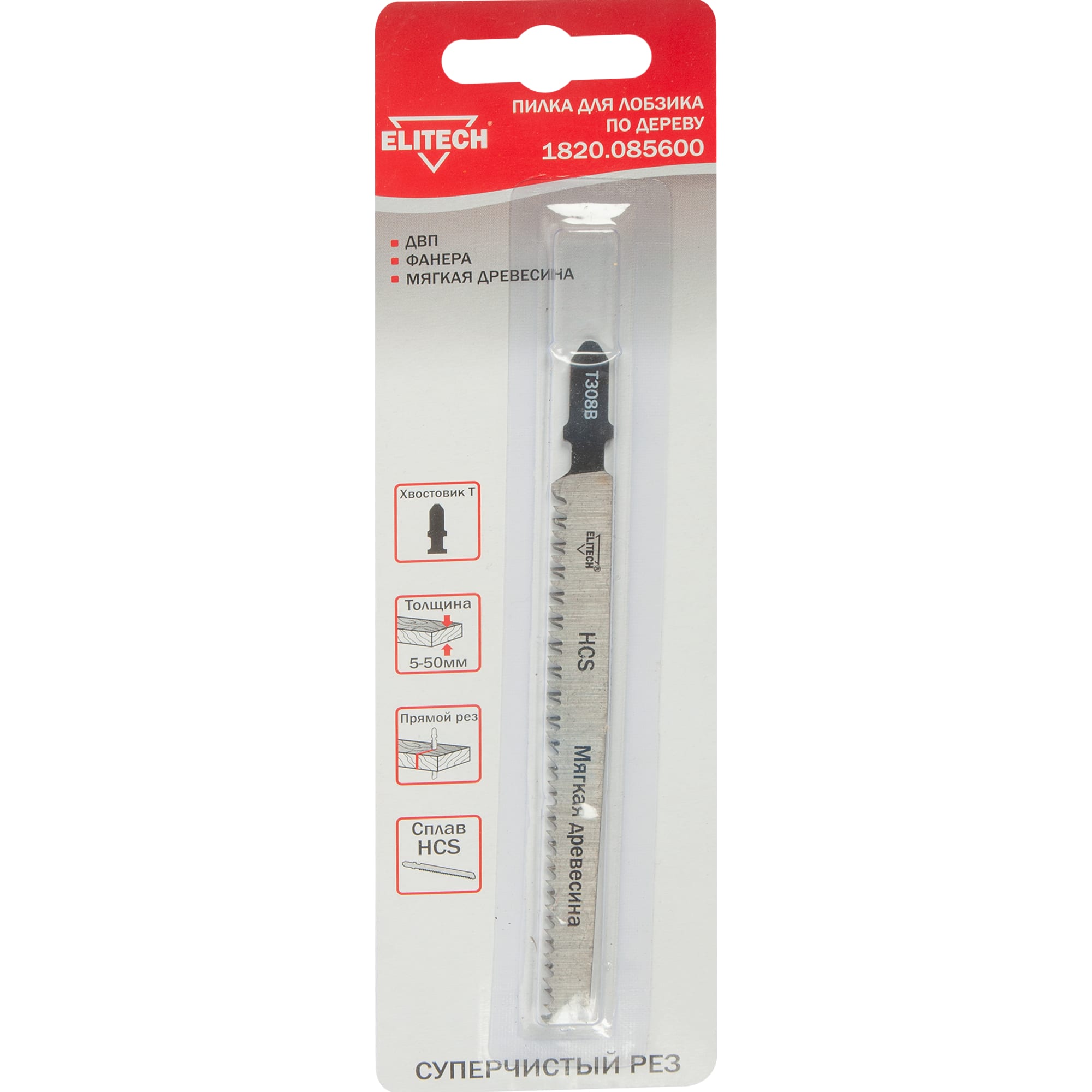 Профессиональная пилка Elitech T308B с Т-образным хвостовиком создана для электрических лобзиков, обеспечивая чистовую обработку древесины твердых пород, ДСП и МДФ.