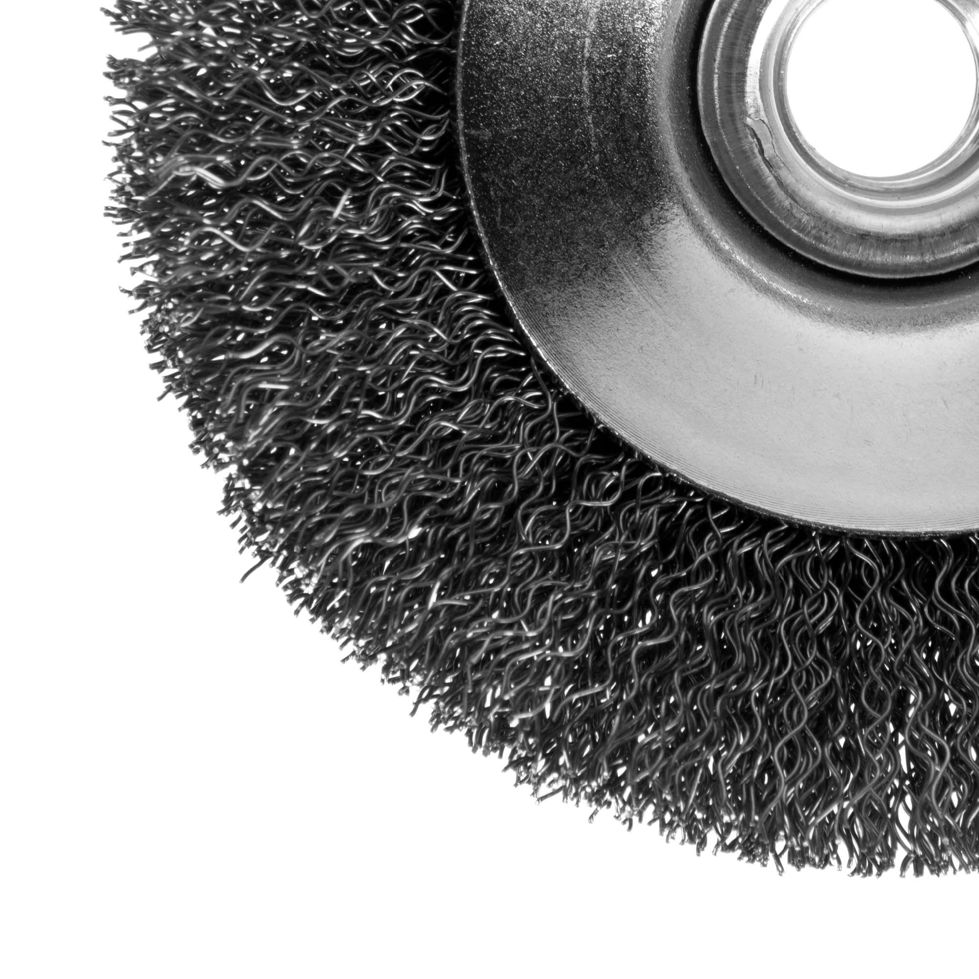 Металлическая дисковая щетка Dexter диаметром 100 мм обеспечивает бережное удаление ржавчины и загрязнений с сохранением целостности обрабатываемой поверхности.