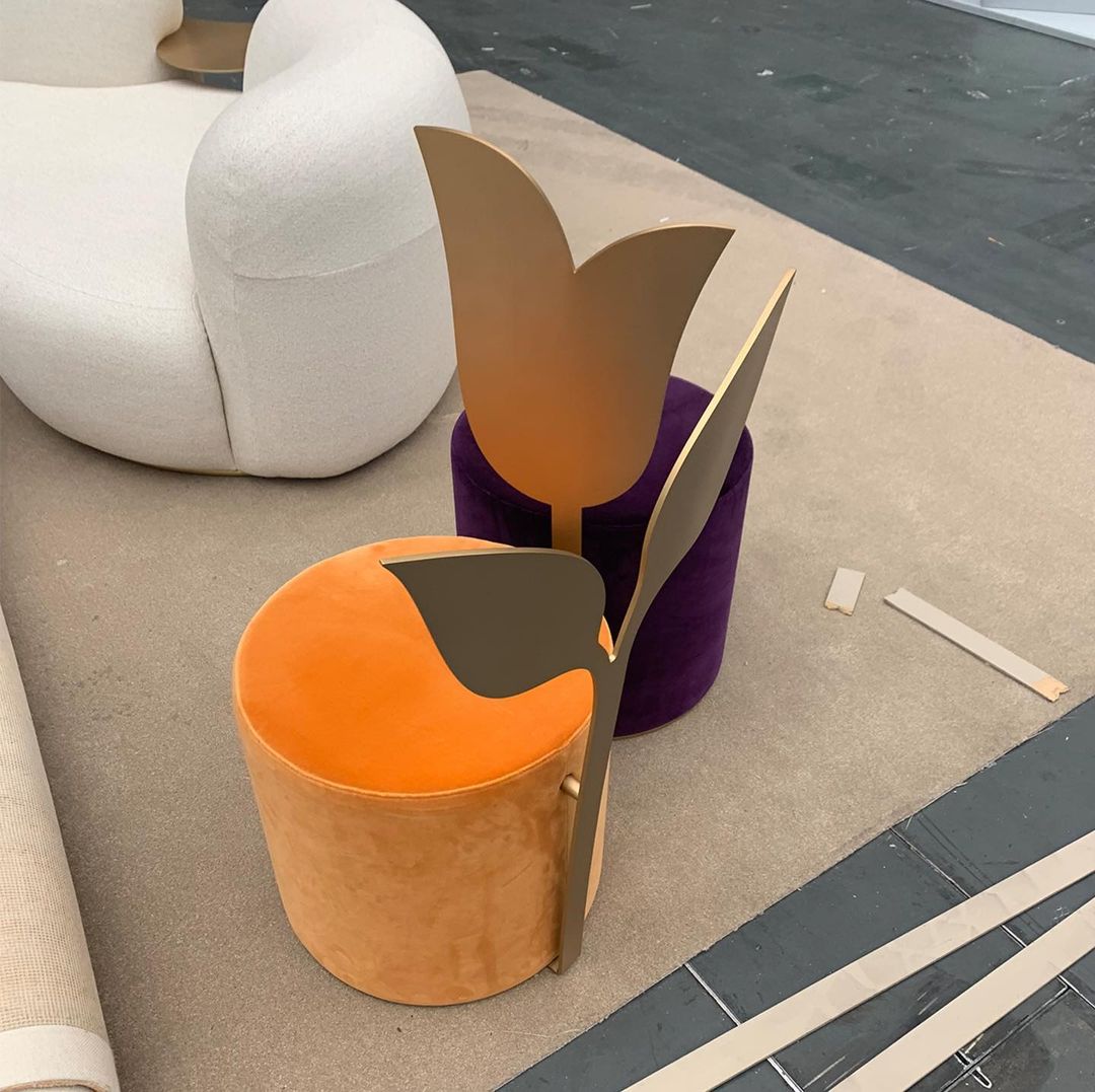 Secolo Lily Мягкий пуф со спинкой Лилия из сатинированной стали