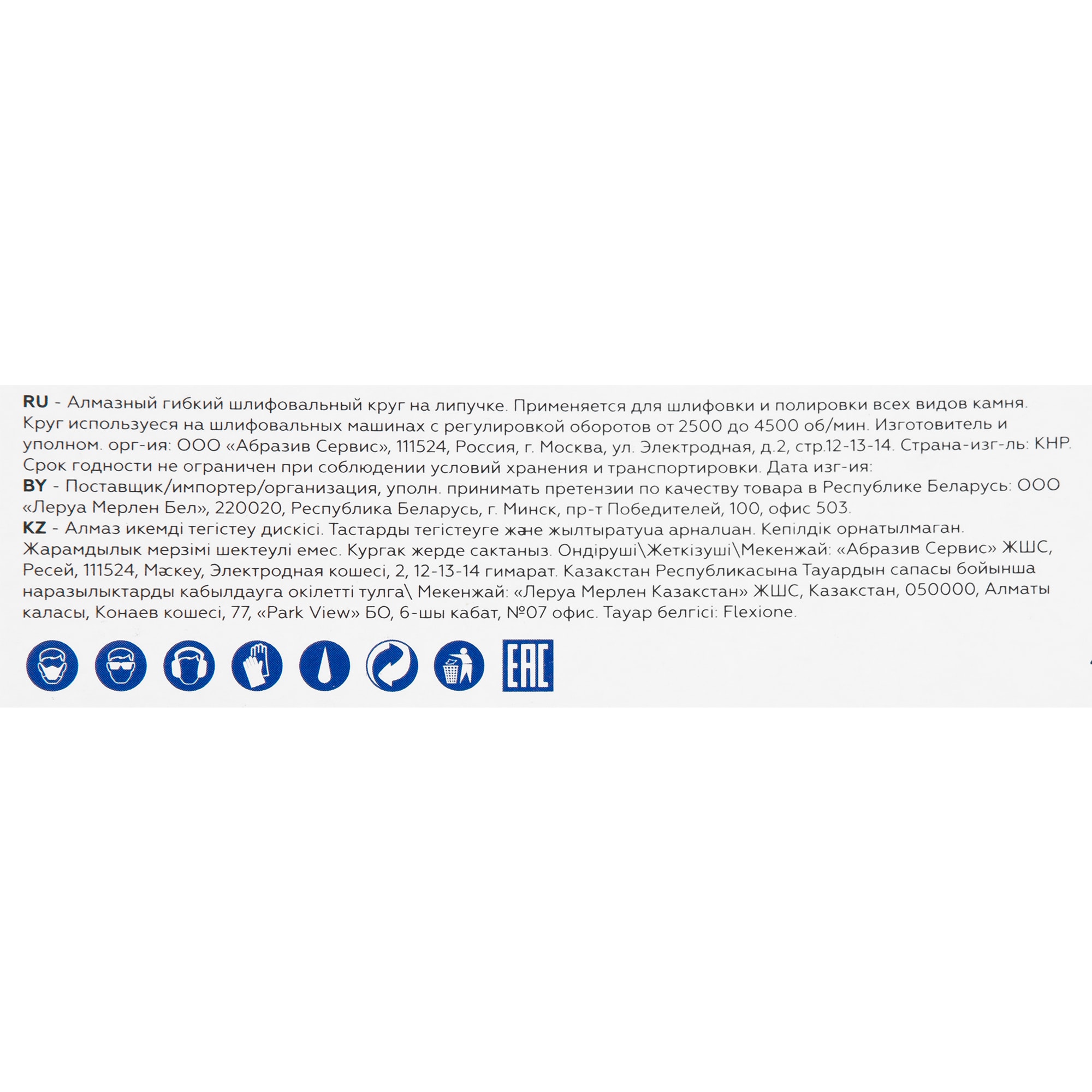 | Тип продукта | Круг алмазный гибкий шлифовальный |