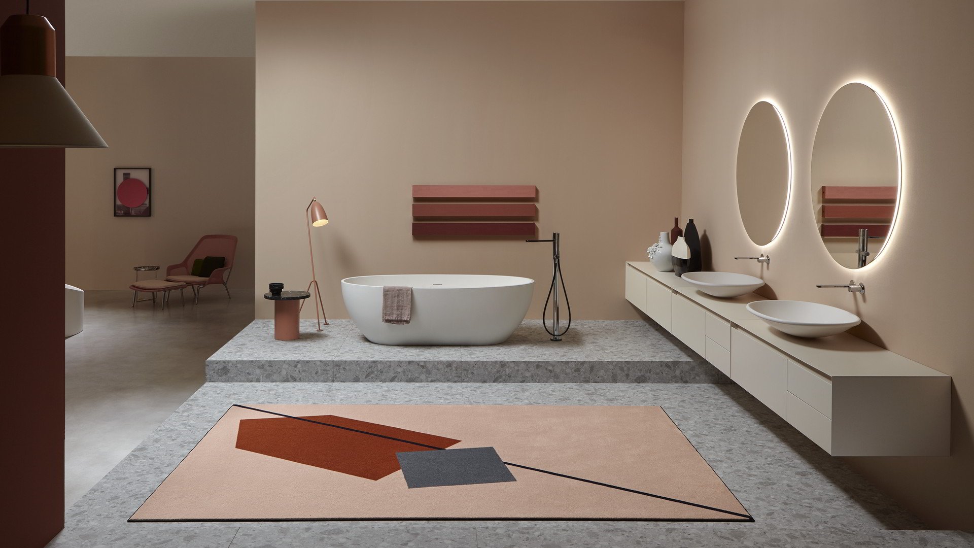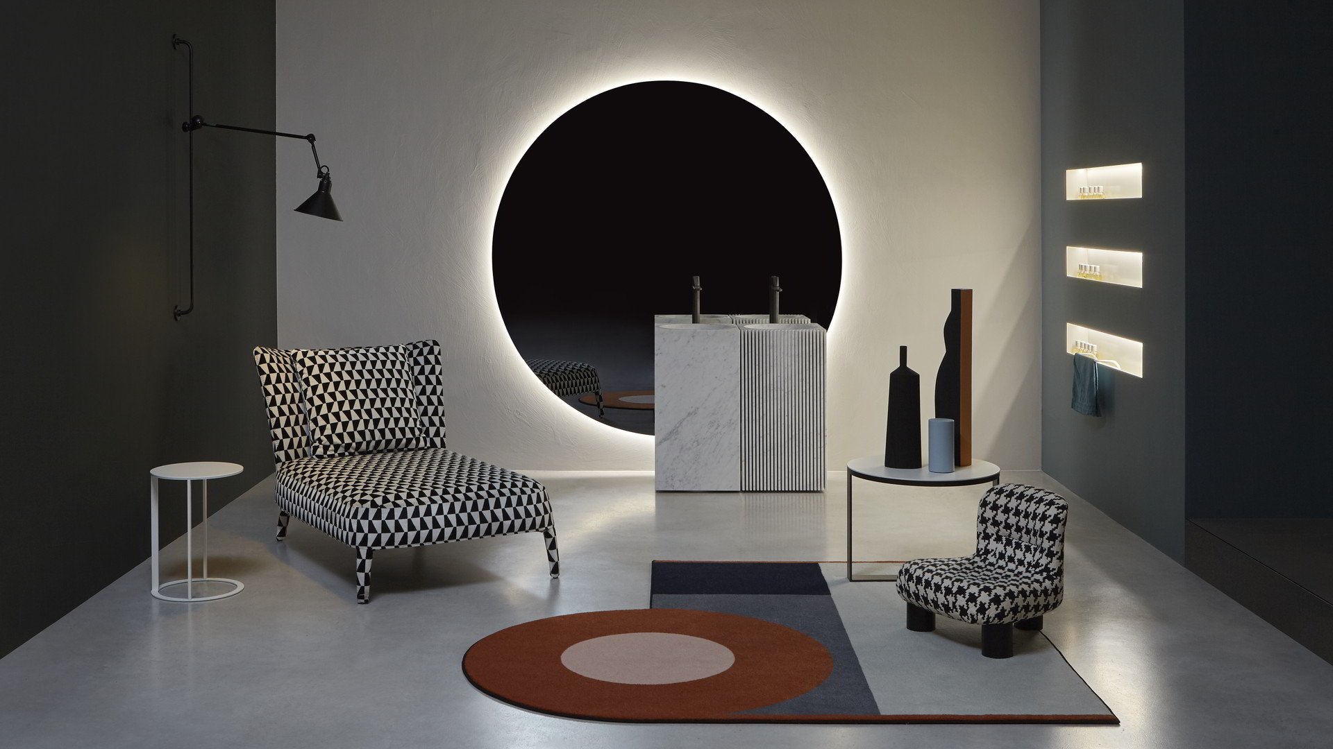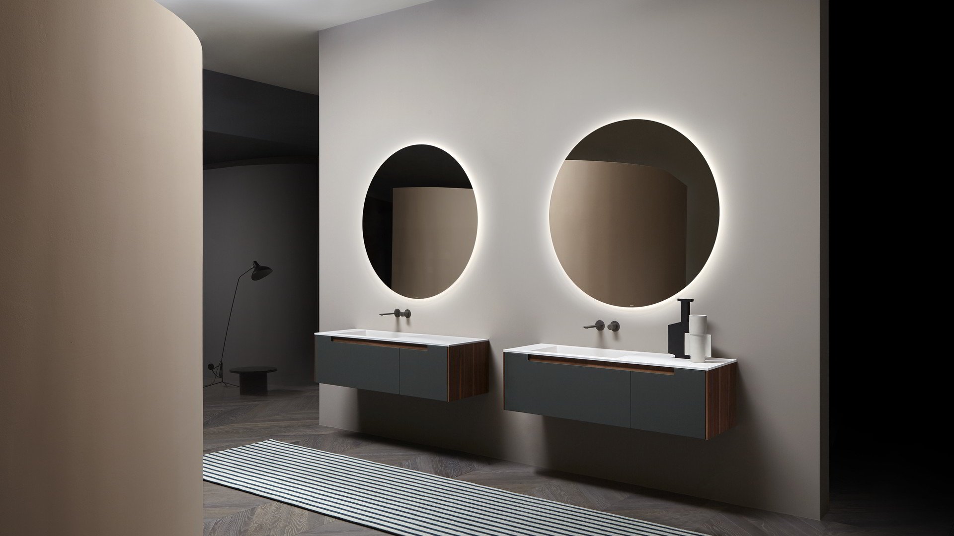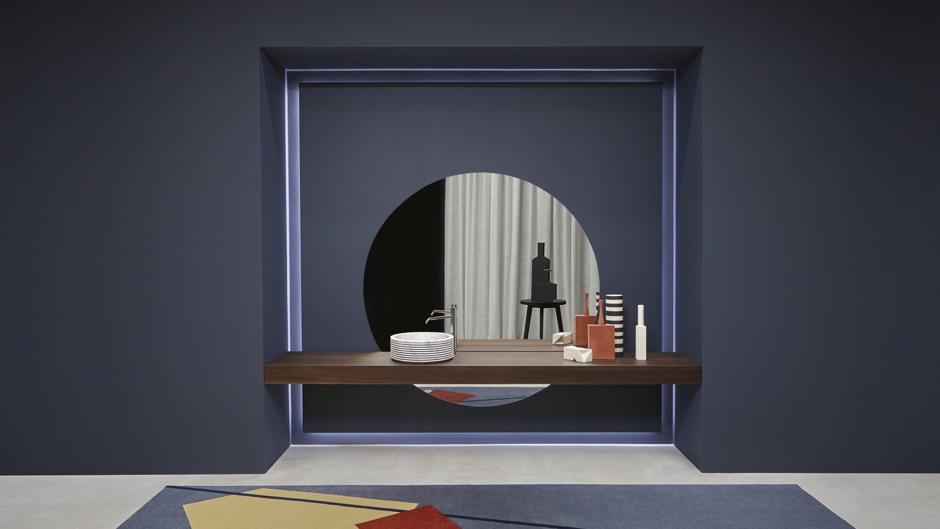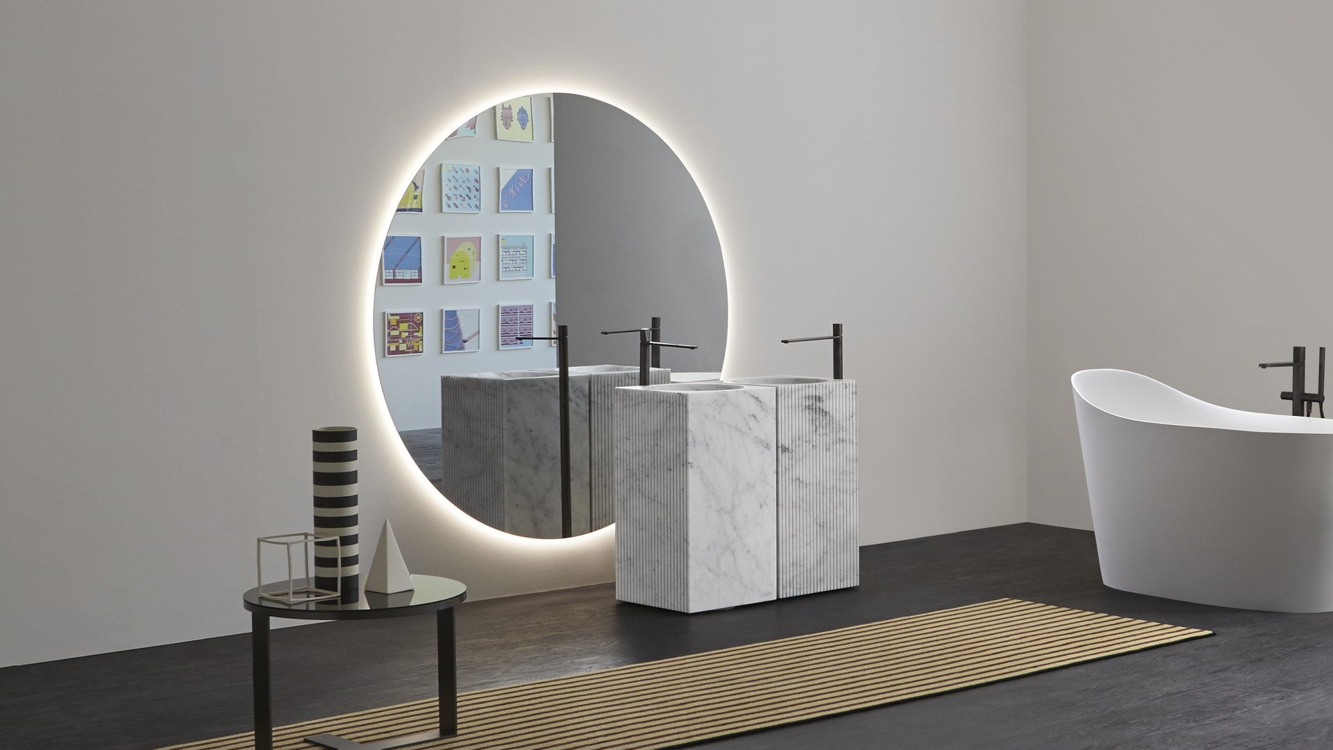 Идеальная геометрическая форма, незамысловатая и почти неземная фигура, которая словно колеблется на стене. Круг Цирка создает коллекцию, способную удовлетворить самые разные эстетические требования. Доступные со светодиодной подсветкой или без нее, эти зеркала идеально сочетаются как с современными интерьерами, так и с элементами ретро или буржуазной атмосферой. Некоторые геометрические формы напоминают старинные формы, характерные для внутреннего убранства зеркал, керамики и других элементов интерьера ванных комнат.