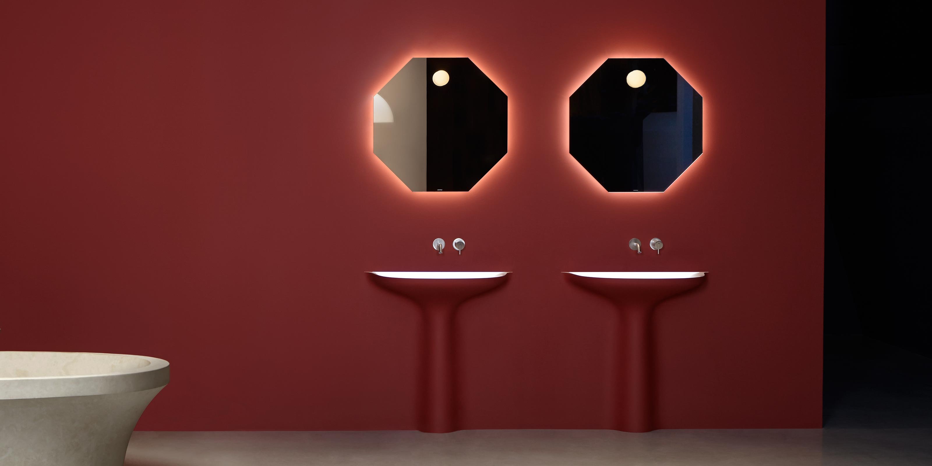 Идеальные геометрические формы, простые и почти неземные фигуры, которые будто колеблются на стене. Шестиугольник Modulo6 и восьмиугольник Modulo8 создают коллекцию, способную удовлетворить различные эстетические требования. Доступные со светодиодной подсветкой или без нее, эти зеркала идеально сочетаются как с современными интерьерами, так и с элементами ретро или буржуазной атмосферой. Некоторые геометрические формы напоминают старинные формы, характерные для внутреннего убранства зеркал, керамики и других элементов интерьера ванных комнат.