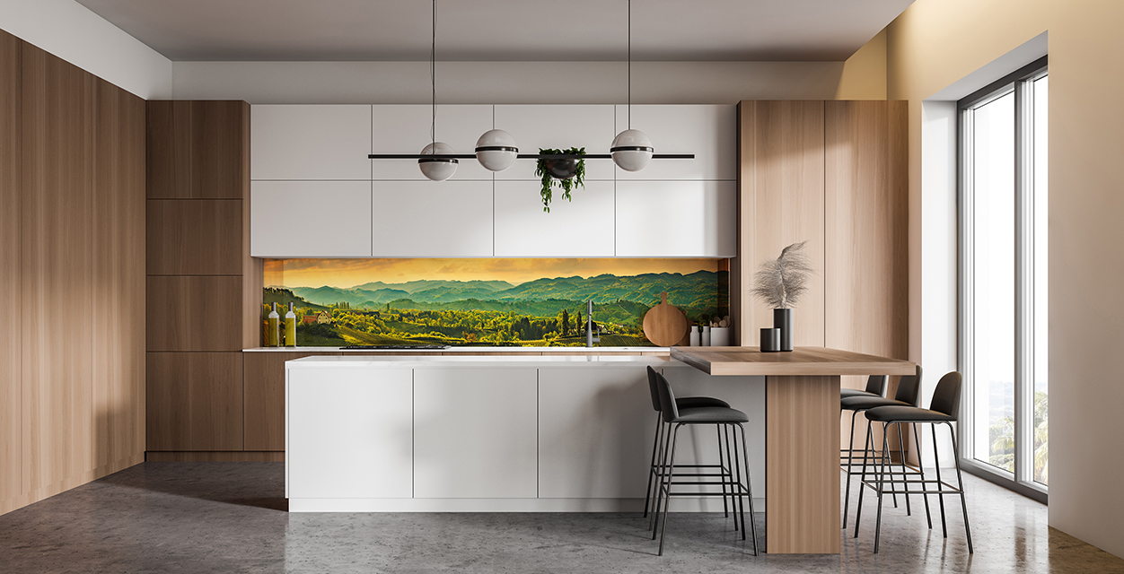 Возможность размещения в зонах сильного нагрева или непосредственно за газовой варочной поверхностью. Лучшая альтернатива неустойчивым к сильному нагреву материалам, таким как искусственный камень.