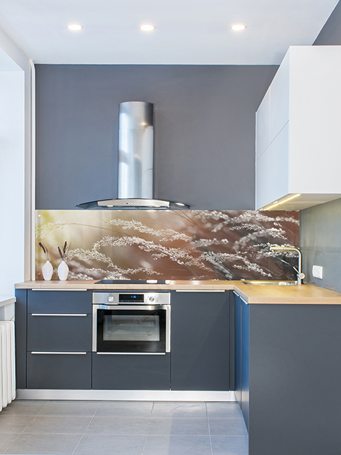 Стекло зеркалит, визуально увеличивая размеры помещения, расширяя пространство. Это ключевой момент в дизайне малогабаритных кухонь и дополнительный плюс в оформлении больших просторных помещений.